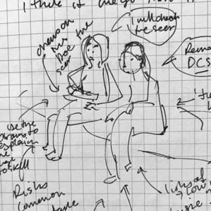 One of the things I have focused on is drawing UX rather than jumping into design programmes. At this stage it allows us to easily draw ideas in conversation and not muck about setting up documents. Plus there’s nothing quite like scrunching up an idea you want to ditch!